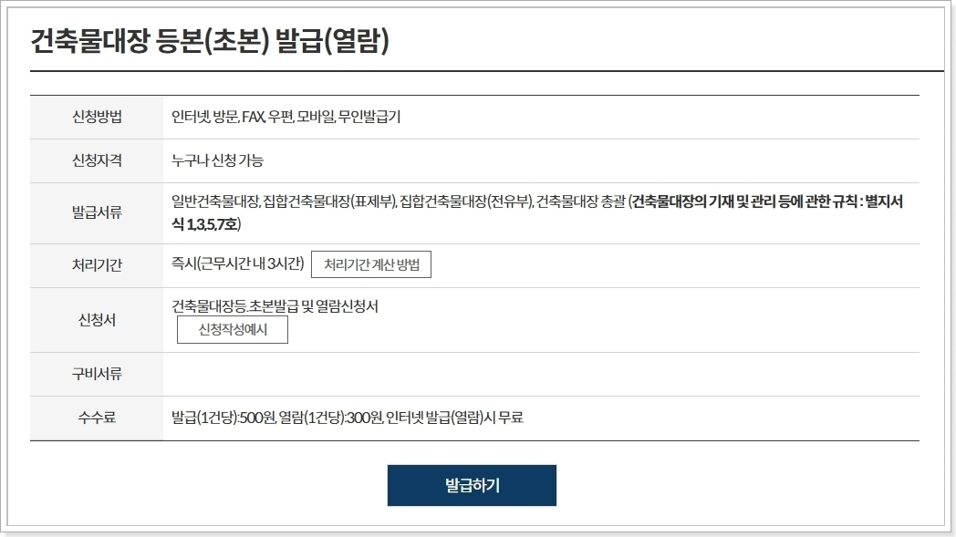 건축물대장 무료열람 민원24시 바로가기